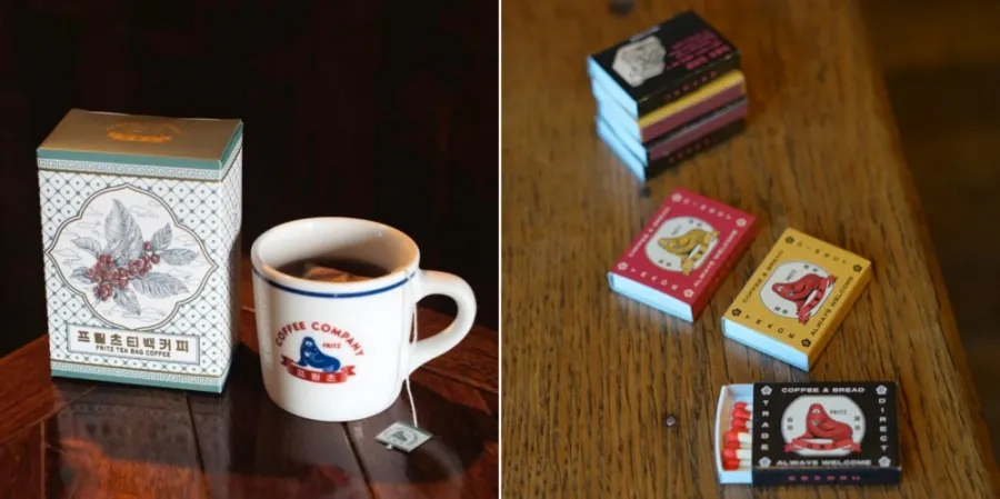 컵홀더나 드립백 등의 디자인도 마찬가지입니다. 한국화에서 색을 칠하는 방식을 참고하고 전통화 기법도 활용했습니다. 70년대 광고처럼 홍보 포스터를 만들기도 했고, 한국의 오래된 성냥갑 디자인을 참고해서 프릳츠 성냥도 제작했습니다. 미국 3대 스페셜티 커피 브랜드인 포틀랜드의 스텀프타운 커피(Stumptown Coffee) 창립자가 이 성냥을 사고 싶다고 연락을 하기도 했어요.(웃음)
