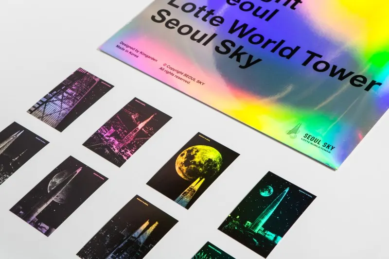 김 : 덕분에 프로젝트를 진행하면서 정말 많은 공부를 했어요. 먼저 롯데월드 타워의 높이를 강조할 수 있는 디자인 상품을 만들어달라고 요청하셔서 거의 반 년 정도 클라이언트와 소통하며 어떤 상품이 좋을지 조율하고, 우리가 지금까지 했던 프로젝트를 돌아보며 우리가 잘하는 것이 뭔가를 되짚어 보기도 했어요. 그러다 보니 홀로그램 방식도 적용하게 되었구요.