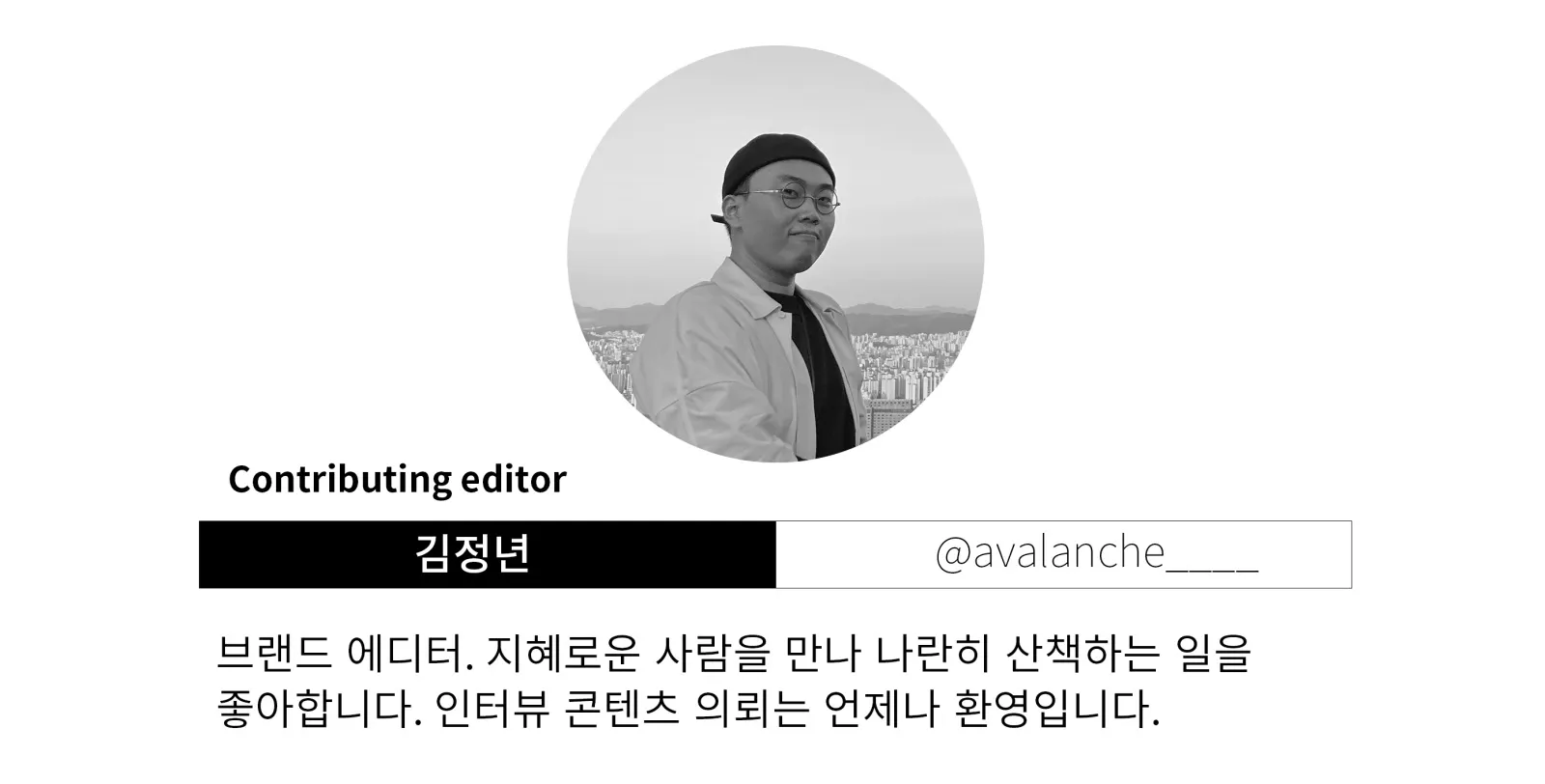 안경테에서 느끼는 미감은 지극히 주관적입니다. 아름다움에 매기는 값어치도 안경 브랜드마다 천차만별! 우리의 지갑 사정은 대체로 아슬아슬하고, 안경처럼 가격대가 들쭉날쭉한 물건은 적절한 판단 기준을 필요로 합니다. 안경은 시력이 나쁜 제게 생활필수품이면서, 동시에 선택에 실패하고 싶지 않은 생활 도구인데요. 저는 매일 쓰는 물건을 고를 때, 두 가지를 기준으로 심사숙고합니다. ‘가격대’와 ‘가격대별 퀄리티’