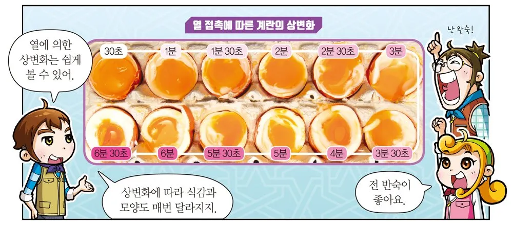 이렇듯 근원을 따져 보면 요리와 과학은 크게 다르지 않다는 것을 알 수 있습니다. 따라서 음식을 만들고 먹는 행위 역시 얼마든지 과학적으로 해석할 수 있지요. 이를테면 식욕을 자극하는 풍미와 먹음직스러운 색깔은 아미노산 화합물이 열을 만나 일어나는 화학 반응이며, 입안에서 느껴지는 음식의 질감은 물리적 현상으로 설명할 수 있습니다. 목표를 설정해 가설을 세우고 재료를 가열하는 일련의 요리 과정 또한 과학에서의 문제 해결 방법과 다르지 않고요. 결국 중요한 것은 우리 태도와 시선입니다. 식탁 앞에 앉거나 혹은 무심코 냉장고 문을 열었을 때 잠깐이라도 과학적인 시선과 생각을 가져볼 수 있을 겁니다.