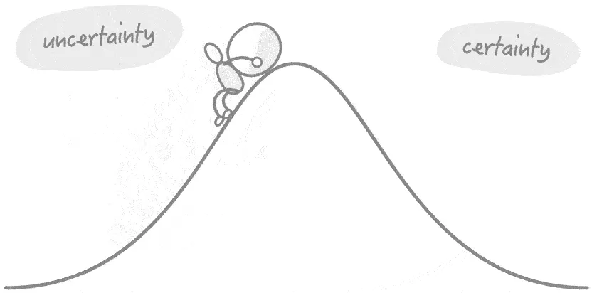 Using the same hill chart model, we could illustrate the process of building a business like this: