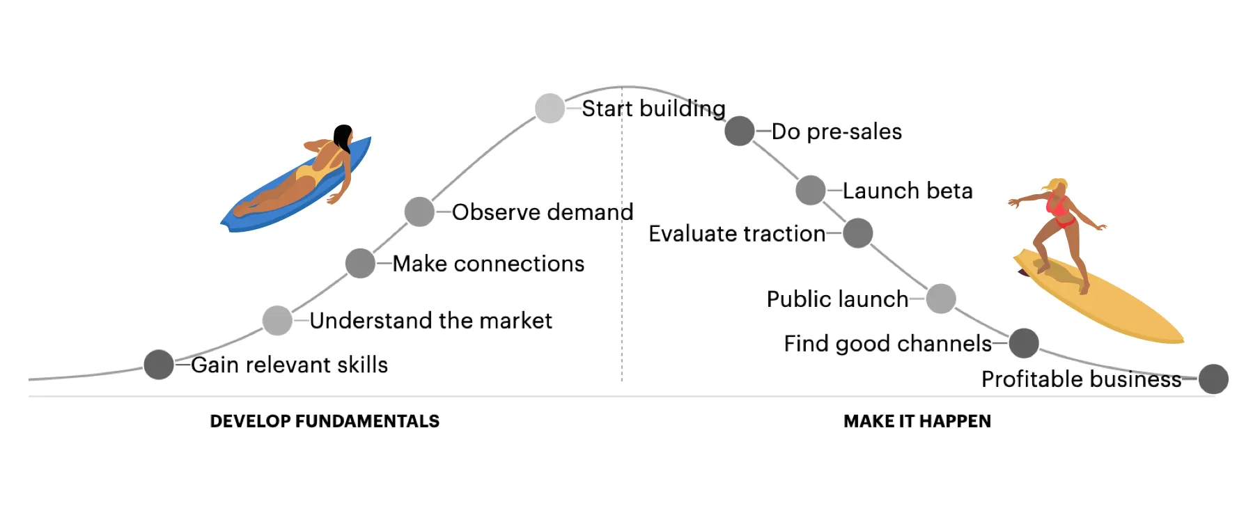 Entrepreneurship, and surfing, are both inherently difficult: not everyone who hops on a surfboard becomes a good surfer! And it will be exceptionally harder if you try to jump ahead, without first developing your fundamentals.