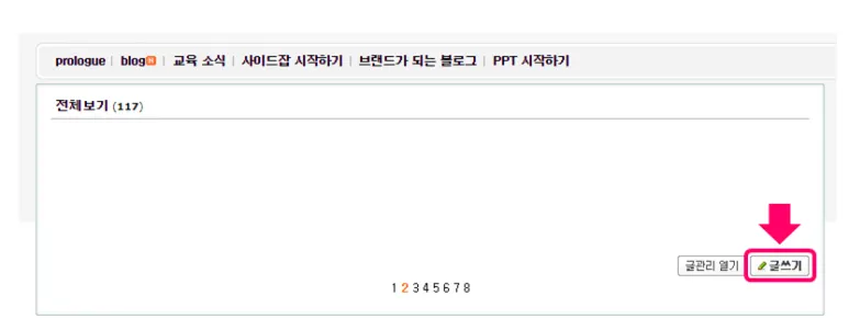 네이버 블로그 기본 에디터로 '스마트에디터 2.0'을 사용하고 계시다면 그냥 '글쓰기'를 누르셔도 됩니다.