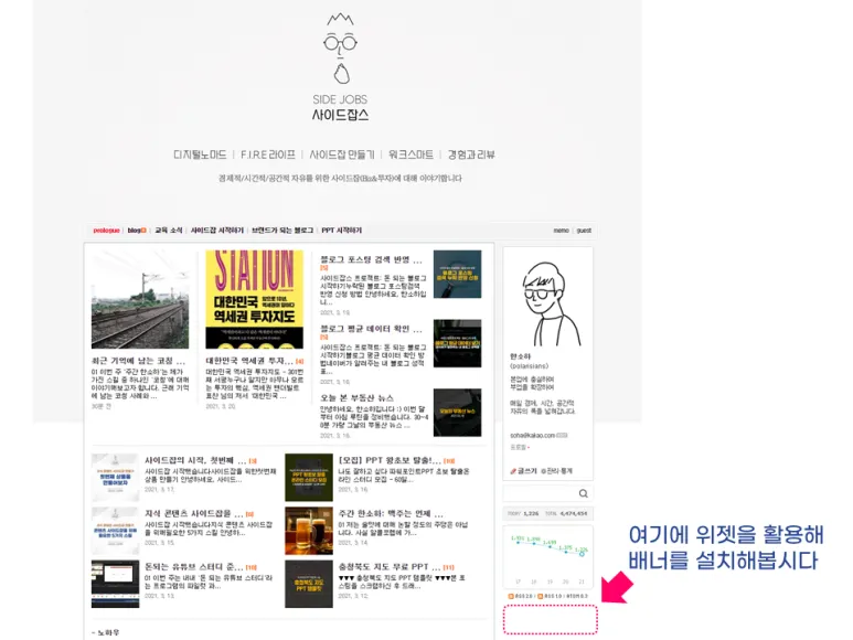 이번 포스팅에서는 블로그 위젯 기능 활용법을 다루고자 합니다. 위젯을 이용한 배너 설치 방법입니다.