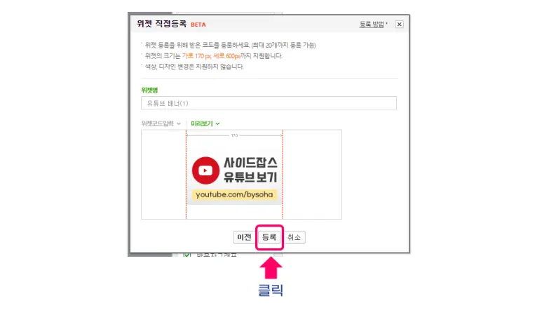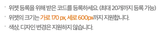 위 이미지 오른쪽과 같은 위젯 직접등록 입력창이 나타납니다.