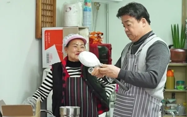 평택 시장 떡볶이집 사장의 순박한 모습. 백종원 레시피로 첫 완판을 한 후 눈물을 흘렸다.