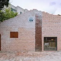 첫번째는 골목길에서 보이는 측면은 벽돌(몽블랑)을 적용해 오랜 시간의 깊이를 가진 물성과 분위기를 담아내며, 한편으로는 아씨시의 분위기를 느끼고 싶어했기에 주택이 골목길에 접한 입면과 마당은 벽돌을 쌓아서 만들었다. 주변 집들도 벽돌과 타일로 마감되어 있어 골목길의 분위기와 어울리며, 마치 오래된 미래를 만들어 관조적인 태도로 공존하는듯한 모습이다.