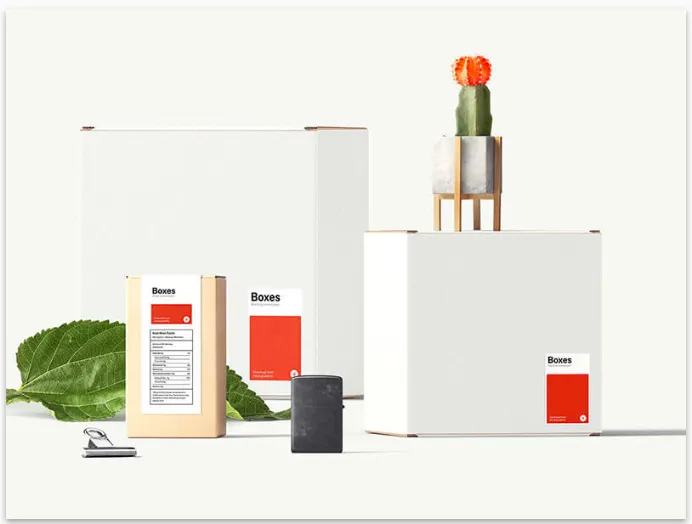 선인장이나 나뭇잎 등 보태니컬 디자인을 갖춘 상자 패키지 3종 세트.