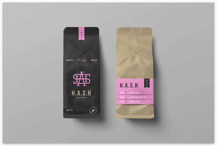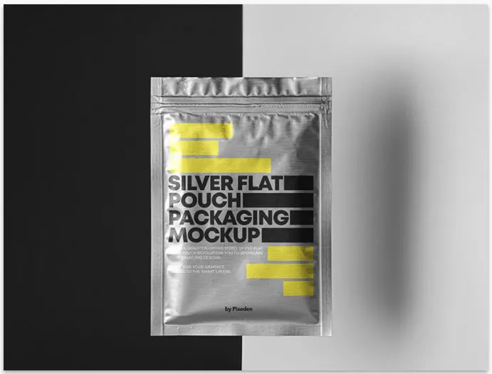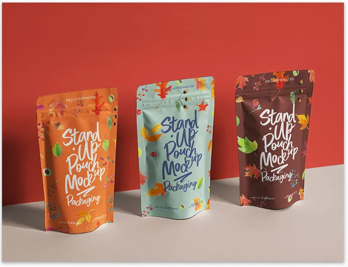 수직형 파우치 가방은 스낵 등의 패키지 디자인을 상징한 PSD 소재.