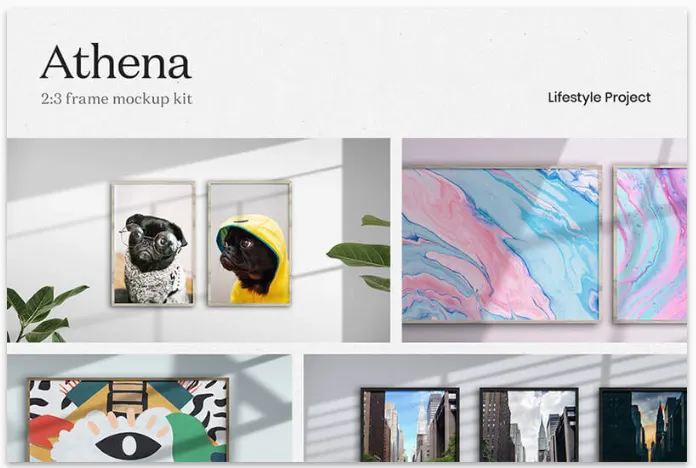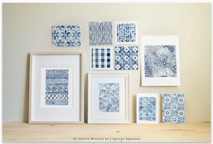 10종류의 크고 작은 액자 및 프레임을 깔끔하게 정렬시킨 목업으로 전시 수가 많을때 활용 할 수 있는 아이템
