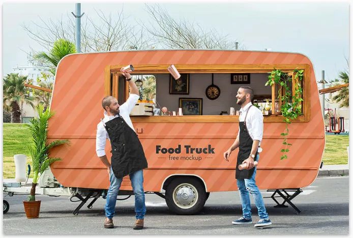 즐겁게 일하는 직원도 함께 디자인 할 수 있는 푸드 트럭 목업