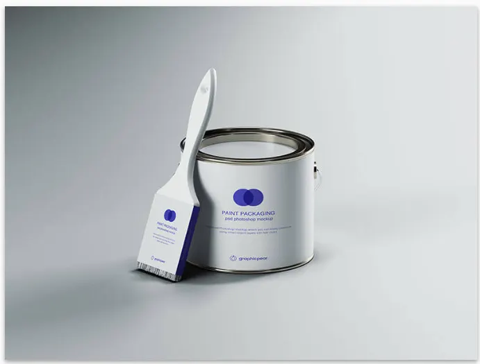페인트 캔과 페인트붓을 함께 디자인 가능한 목업