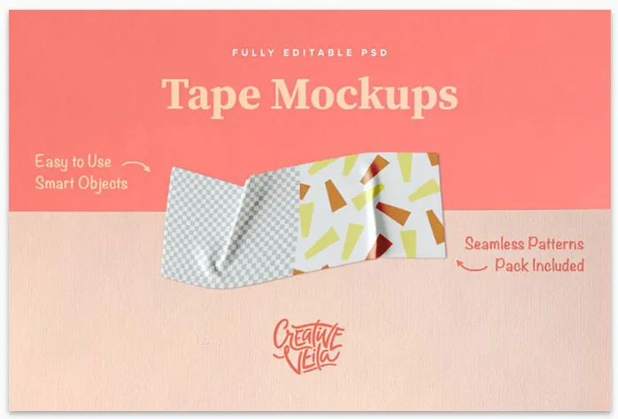 붙인 테이프를 좋아하는 색상과 패턴으로 디자인 할 수 있고 다른 소재와 함께 이용가능한 목업