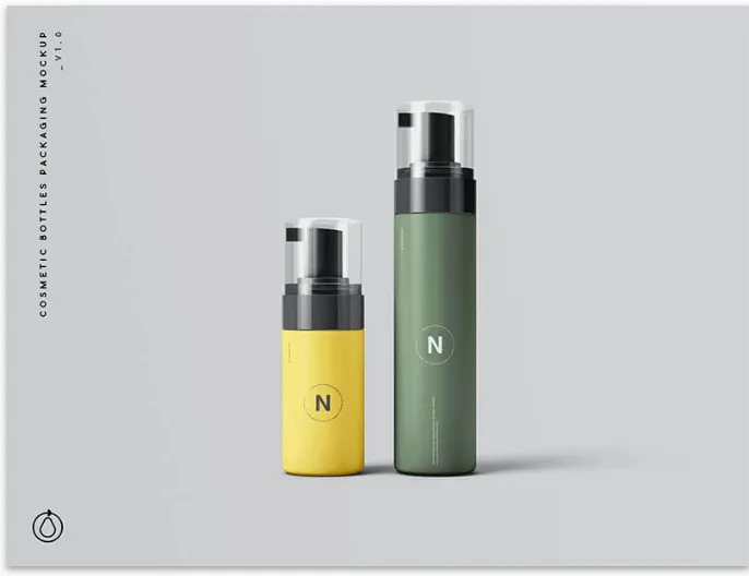 대소 2 크기의 거품 폼 타입의 병 포장, 화장품 등 화장품 관련을 상징하고 있습니다.