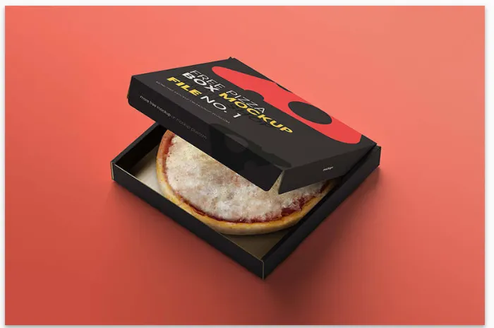 따끈 따끈한 피자를 배달 택배 박스를 정의.