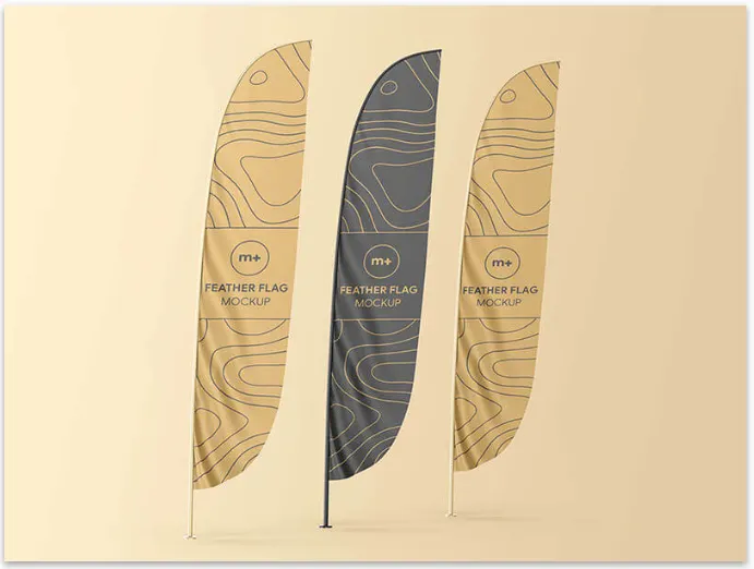 깃털 모양의 깃발 아이템으로 프로모션 홍보나 이벤트등에 적합한 목업