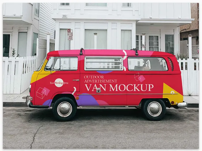 인기있는 복고풍 폭스 바겐 밴을베이스로, 차 전체를 자유롭게 디자인 할 수 있는 목업
