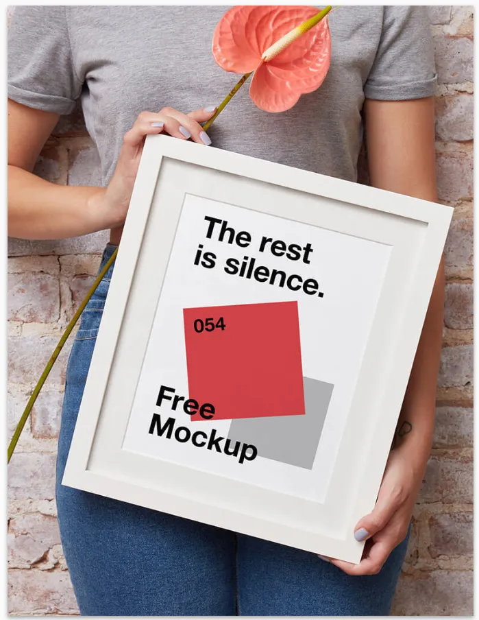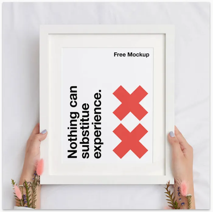 심플한 액자를 손에 든 목업 입니다. 포스터 부분을 수정 할 수 있습니다.