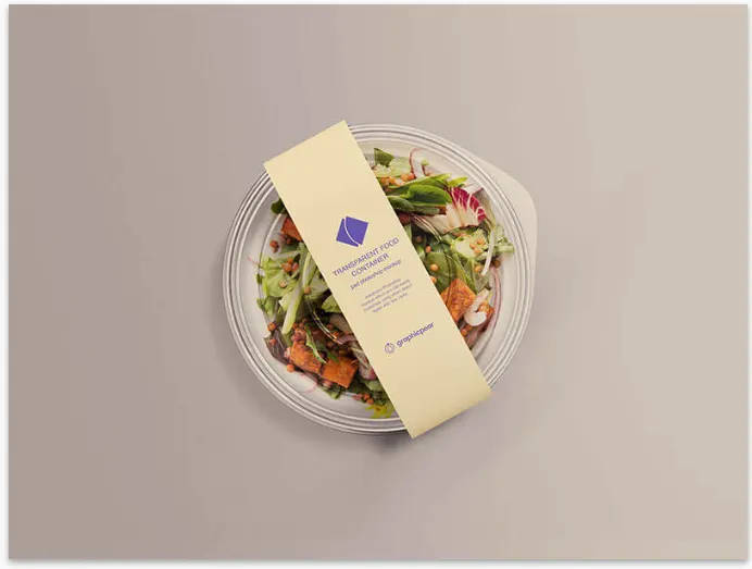 샐러드와 파스타 등 좋아하는 요리를 넣는 투명 플라스틱 용기 목업