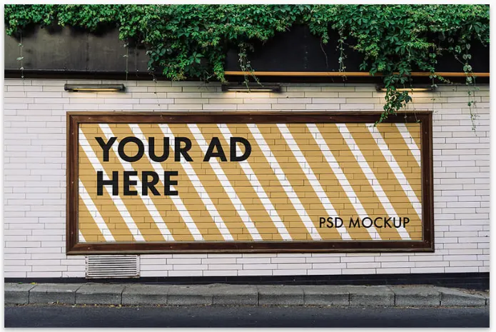 야외에서 나무 테두리 안에 디자인 가능한 광고 디스플레이용 목업