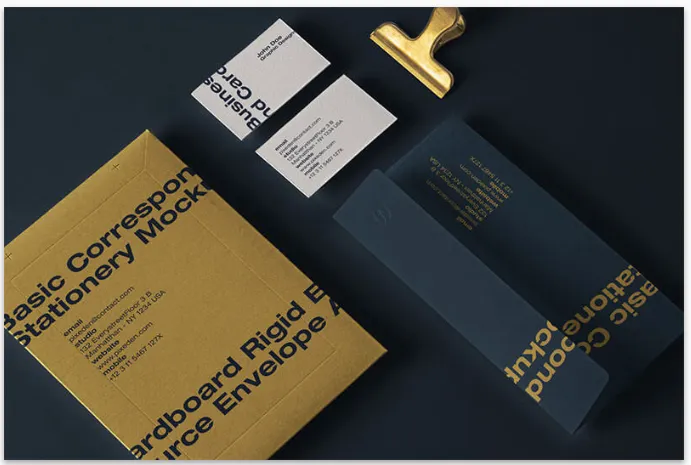 명함, 봉투 대소 크기의 디자인을 함께 할 수 있는 소재로 살짝 한 그림자의 그림자가 리얼 함을 업합니다.