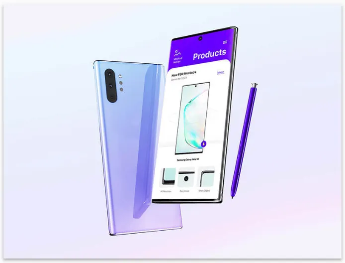 수납형 스타일러스 펜을 가진 Samsung Galaxy Note 10 Plus는