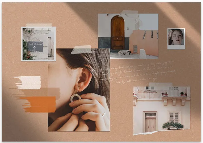 아이디어를 정리 한 무드 보드에는 여러 장의 사진 외에