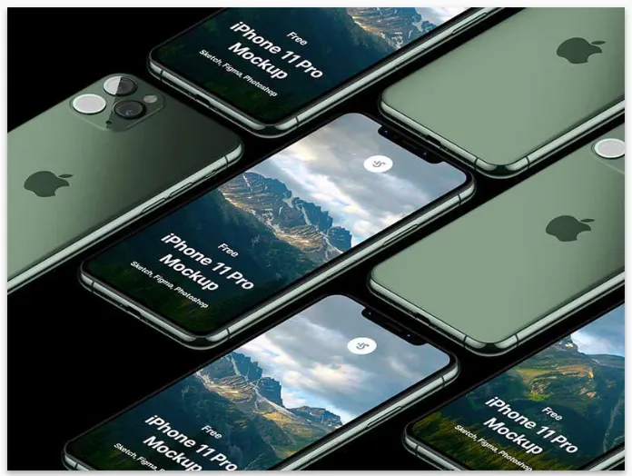 아이폰11 프로 목업 Photoshop뿐만 아니라 Sketch와 Figma용 파일도 함께 포함되어 있습니다.